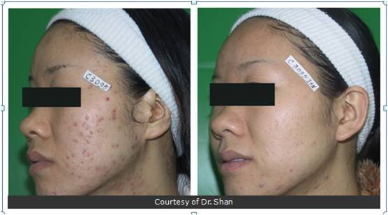 原理:通过选择性的光热作用,减少了痤疮厌氧杆菌的繁殖,从而减轻了痤疮发炎的红肿热痛的症状,同时,可以抑制皮脂腺的分泌,从根本上达到治疗痤疮的目的。